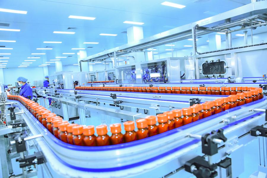 This undated photo shows a workshop of goji berry puree of the Beryl Gojiberries Co., Ltd. in Helan County of Yinchuan City, northwest China's Ningxia Hui Autonomous Region. (Xinhua)