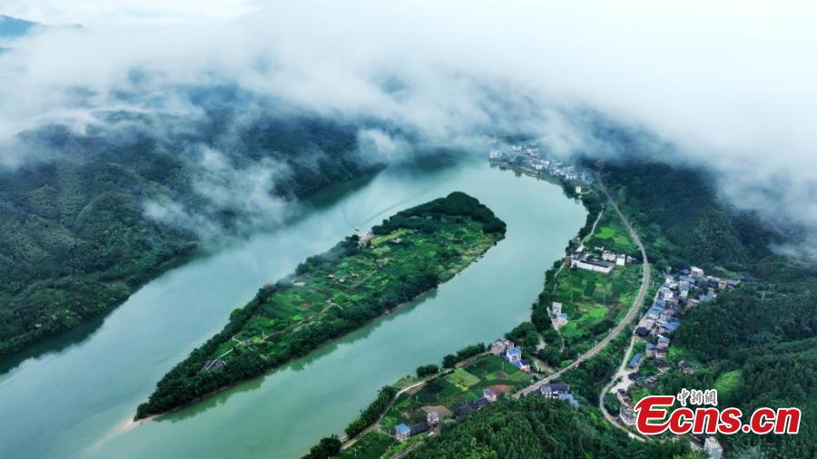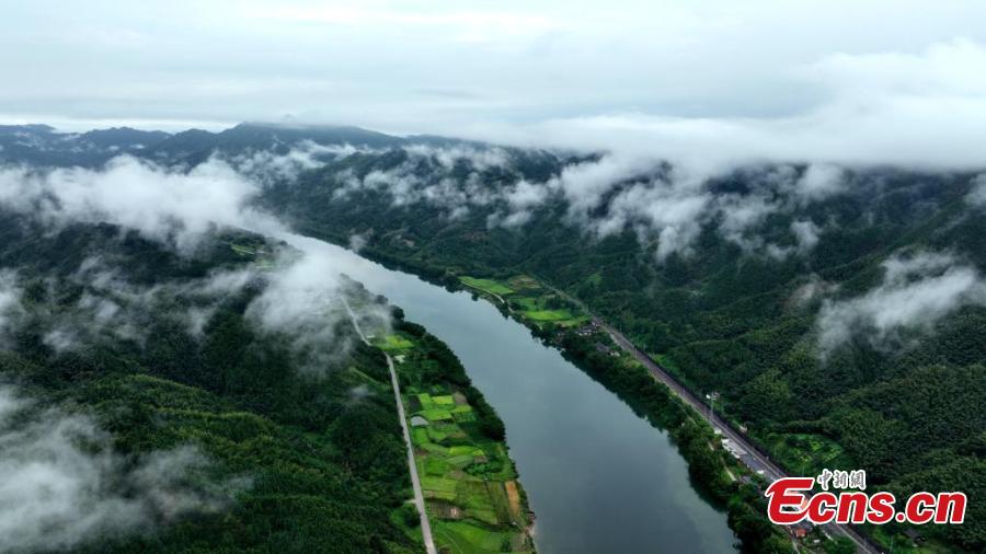 Clouds shrouded Sanjiangkou after rain at Sanjiang Dong Autonomous County in Liuzhou City, south China's Guangxi Zhuang Autonomous Region. (Photo: China News Service/Gong Pukang)