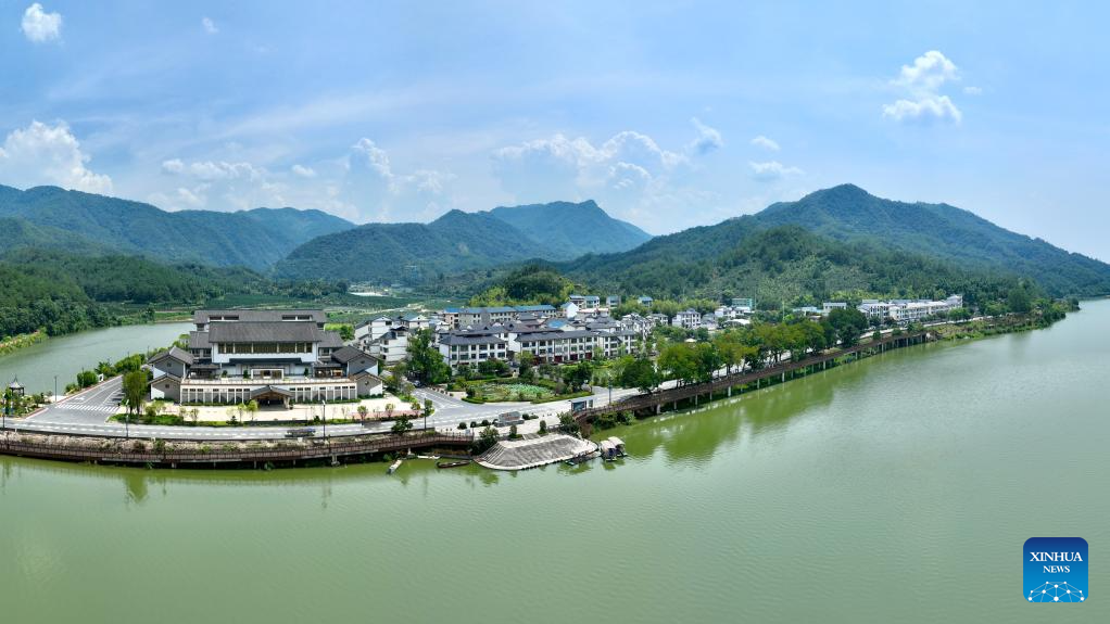 An aerial drone photo shows a view of Changkou Village of Jiangle County, Sanming City, southeast China's Fujian Province, Aug. 10, 2024. Sanming City has been exploring a new path of development that embraces green transformation to boost rural tourism including forest-based health services and other economic activities. Currently, forests cover 77.12 percent of the total area in the city. (Xinhua/Jiang Kehong)