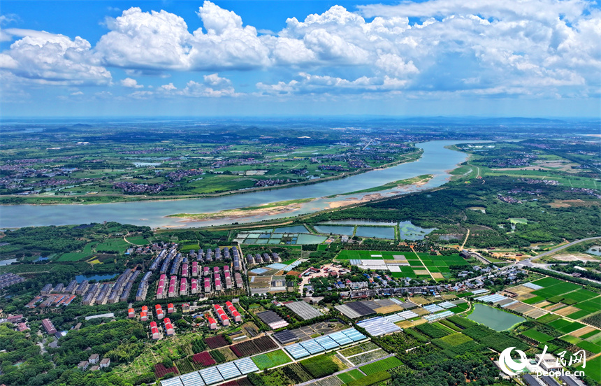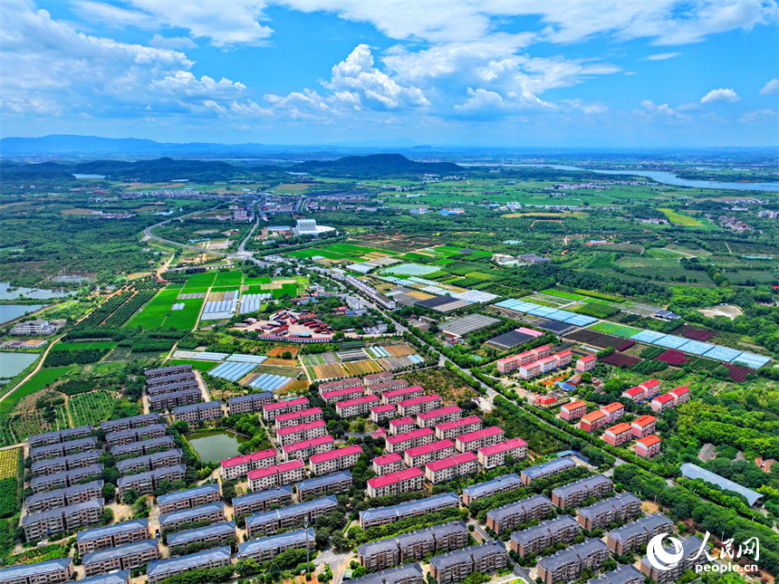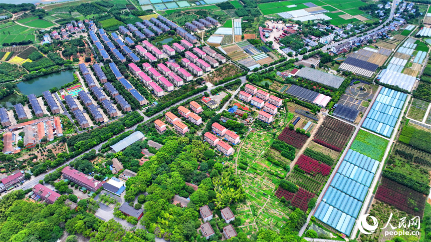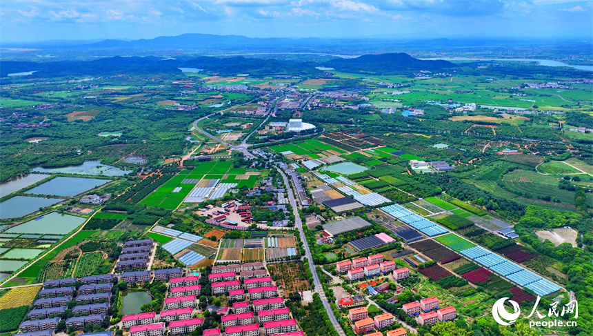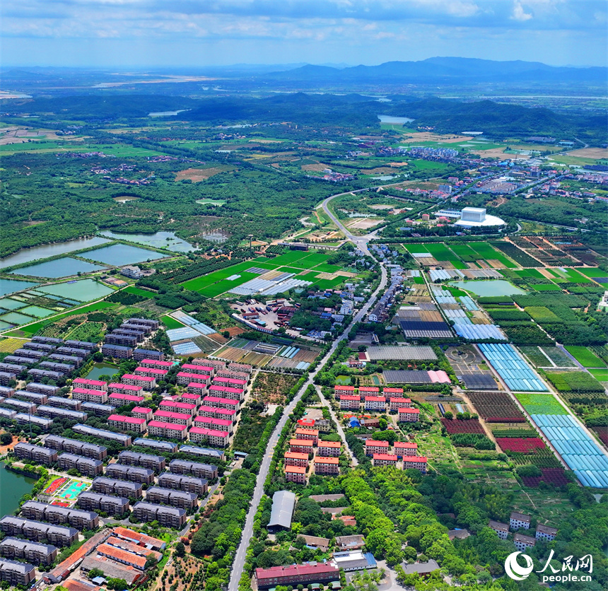 Aerial photo shows the colorful rural landscape in Fenghuang village of Nanchang county, Nanchang city, capital of east China’s Jiangxi Province. (People’s Daily Online/Zhu Haipeng)