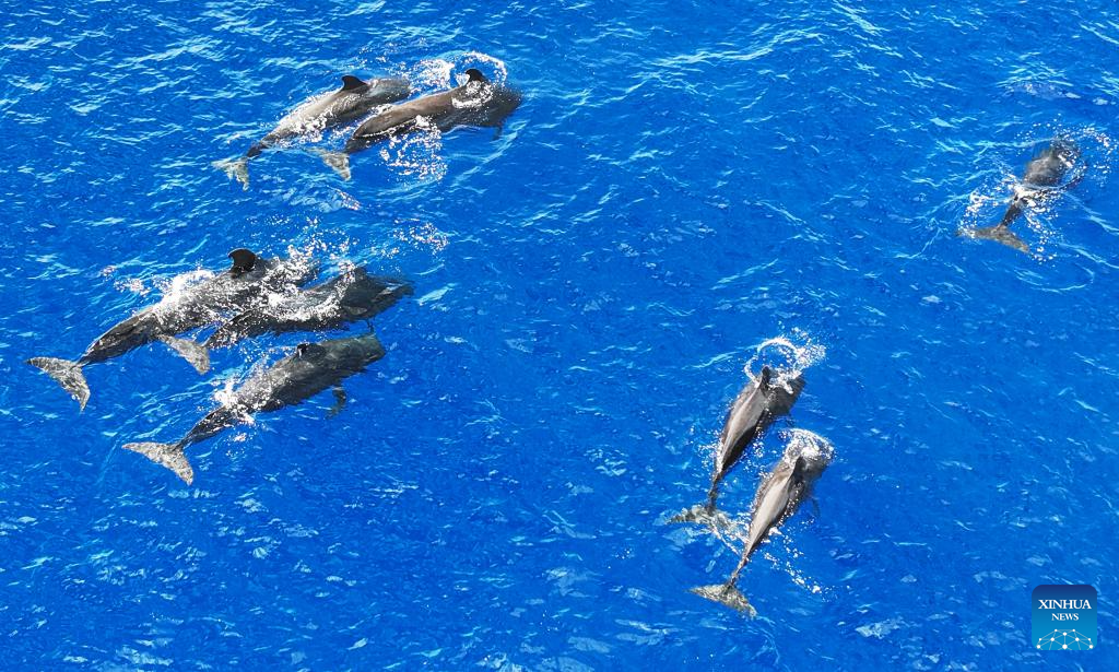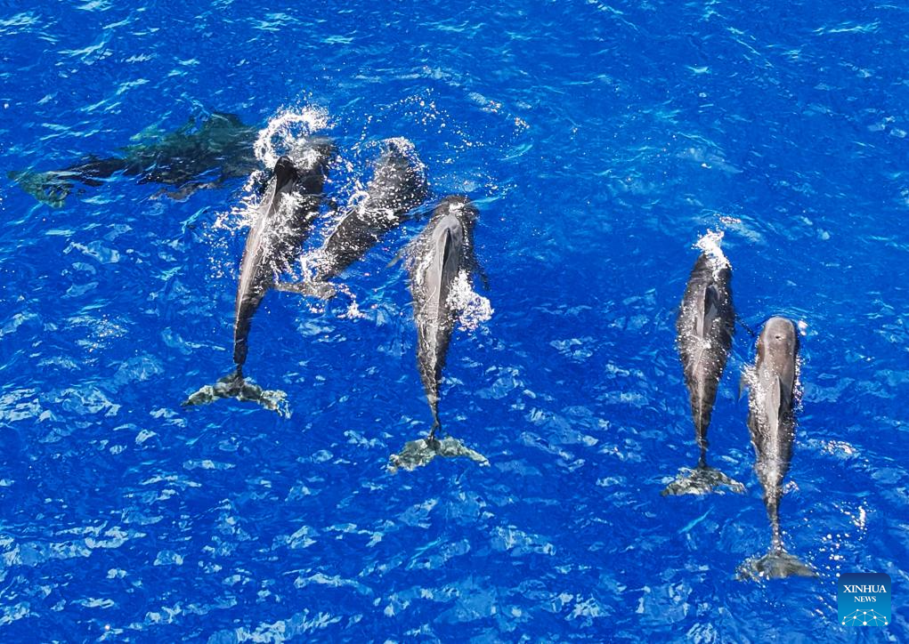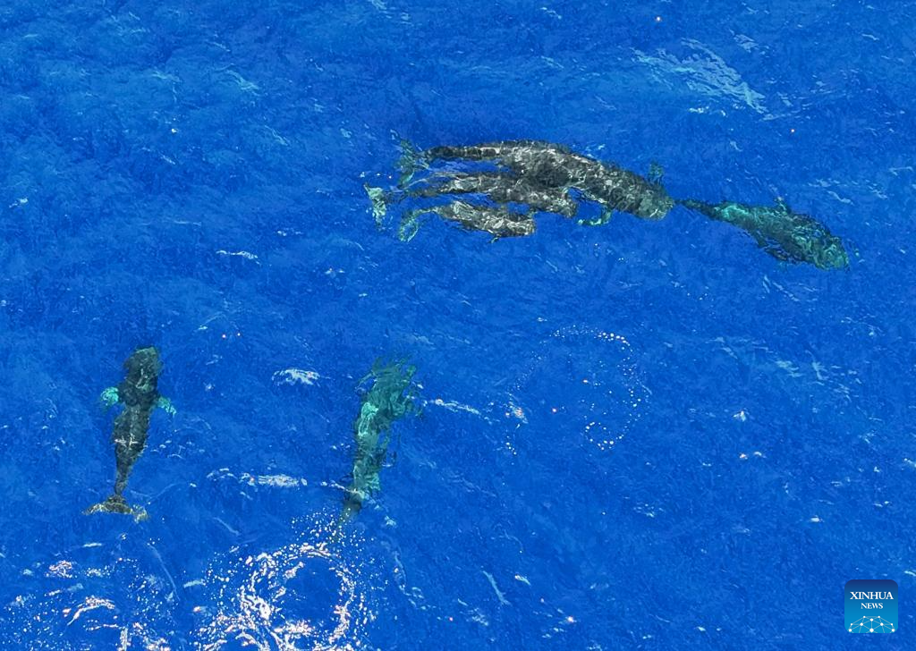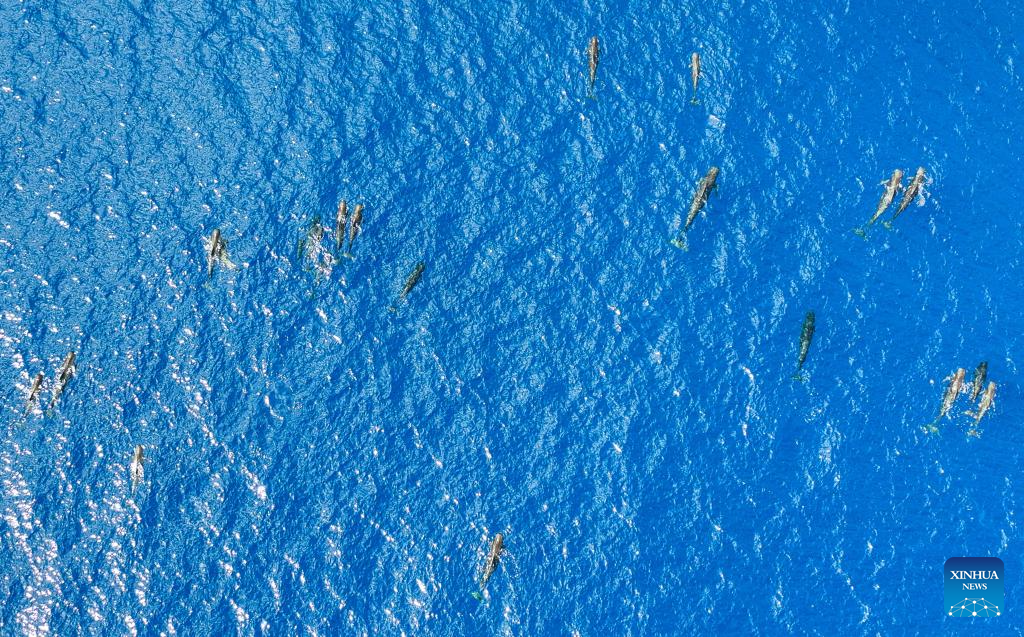 A group of short-finned pilot whales have recently been spotted in the South China Sea. (Xinhua/Deng Hua)