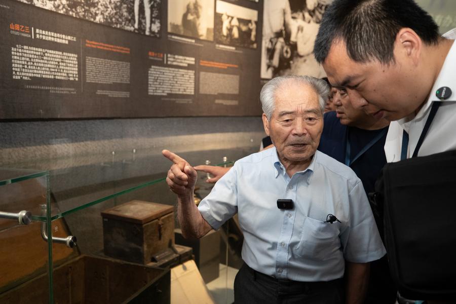 Hideo Shimizu visits the Exhibition Hall of Evidences of Crime Committed by Unit 731 of the Japanese Imperial Army in Harbin, northeast China's Heilongjiang Province, Aug. 13, 2024. (Xinhua/Zhang Tao)