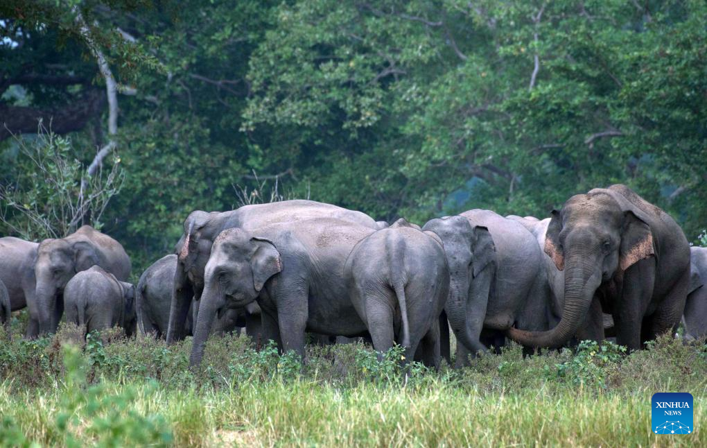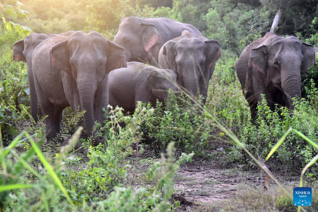 This photo taken on Aug. 11, 2024 shows herds of free-ranging elephants in Habarana forest of Anuradhapura district, Sri Lanka. (Photo by Ajith Perera/Xinhua)