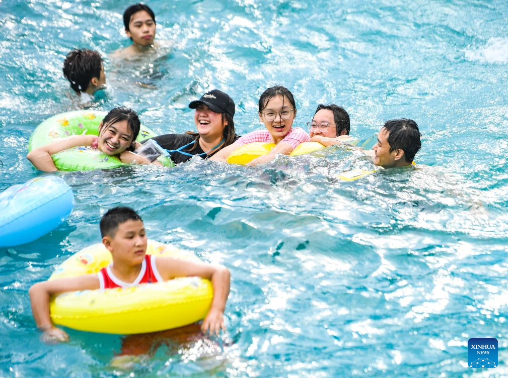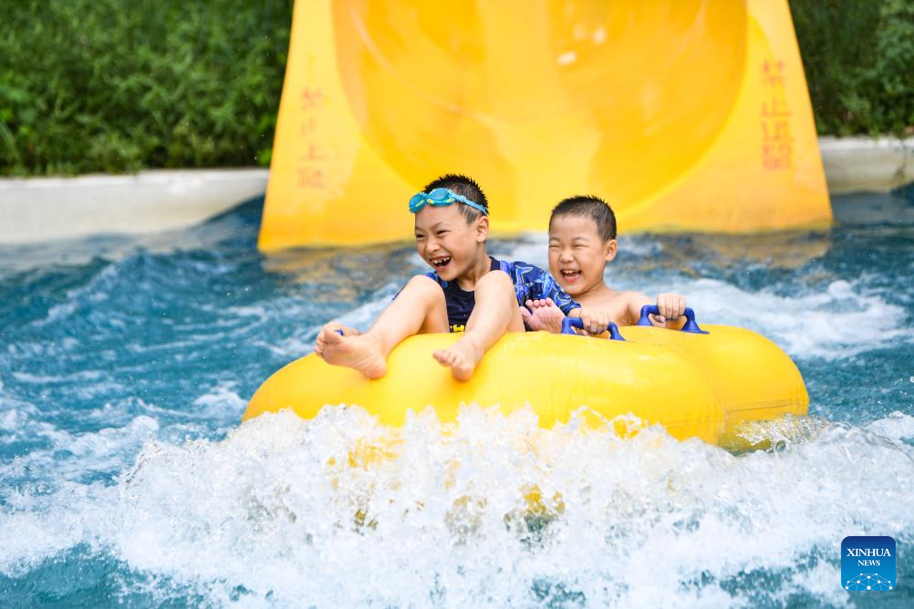 Tourists have fun at a water park in Fuling District, southwest China's Chongqing Municipality, Aug. 18, 2024. (Xinhua/Wang Quanchao)