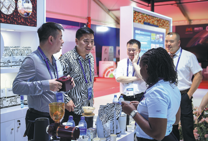 Exhibitors promote coffee products during an expo in Nairobi, Kenya earlier this year. (LI YAHUI/XINHUA)