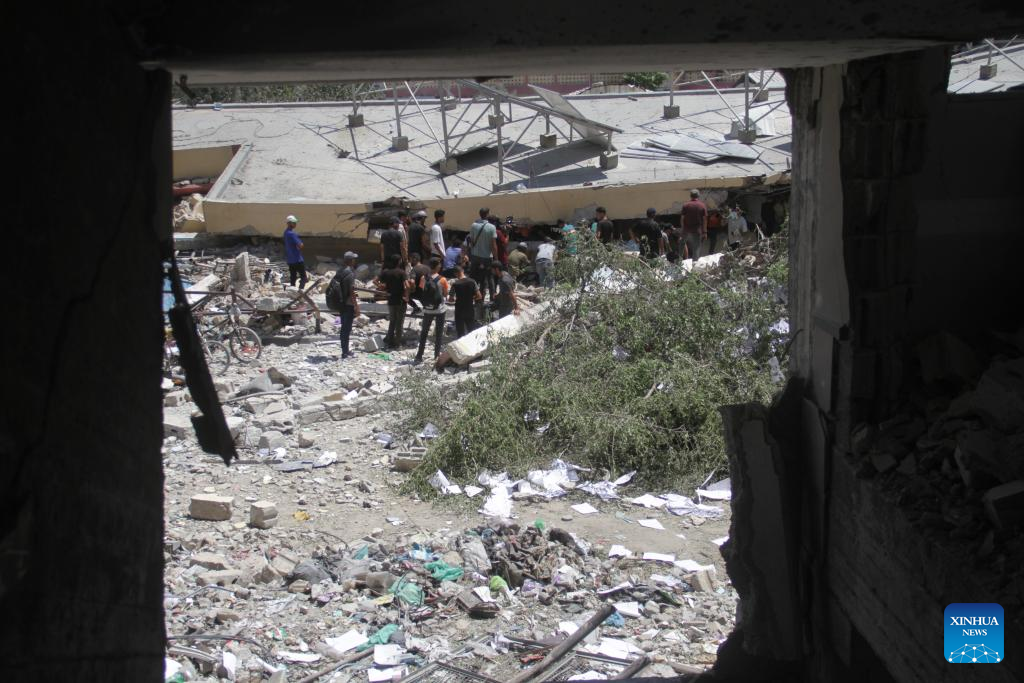GAZA, Aug. 20 (Xinhua) -- At least nine Palestinians were killed, and others were wounded in an Israeli airstrike on a school sheltering displaced people in Gaza City, Palestinian security and medical sources said Tuesday.