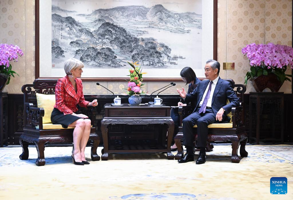 BEIJING, Aug. 20 (Xinhua) -- Chinese Foreign Minister Wang Yi met with Julie Bishop, special envoy of the secretary-general of the United Nations (UN) for Myanmar, in Beijing on Tuesday.