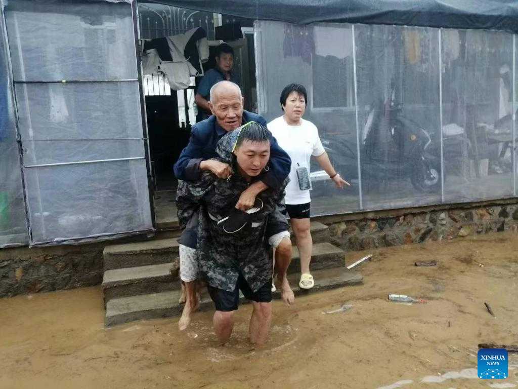 Rescue efforts underway in heavy rain-hit Huludao of Liaoning Province