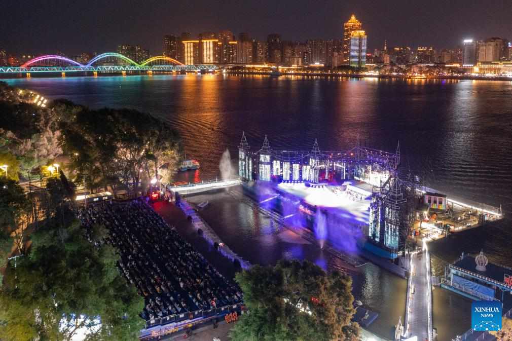 The live-action performance "Encounter Harbin" is staged at Sun Island scenic spot in Harbin, northeast China's Heilongjiang Province, June 10, 2024. In recent years, while the booming night economy in China's northeast region is providing local people and tourists with colorful nightlife options, it has given impetus to the growth of local economy. (Xinhua/Xie Jianfei)