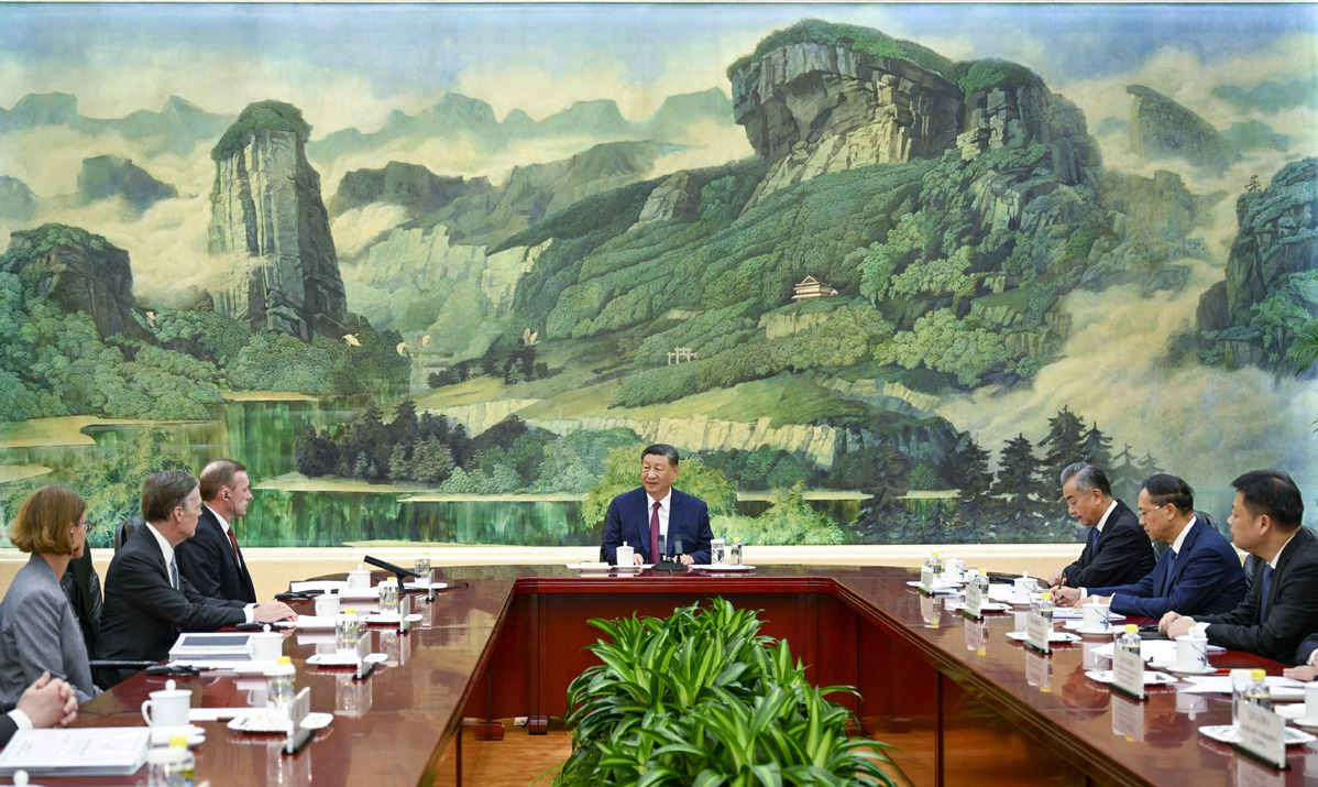 President Xi Jinping meets on Thursday with Jake Sullivan, national security adviser of the United States, at the Great Hall of the People in Beijing. (YIN BOGU/XINHUA)