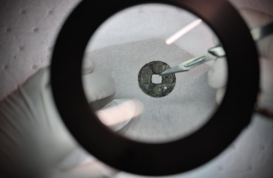 A staff member of China (Hainan) Museum of the South China Sea restores cultural relics in Qionghai City, south China's Hainan Province, Aug. 27, 2024. (Xinhua/Guo Cheng)
