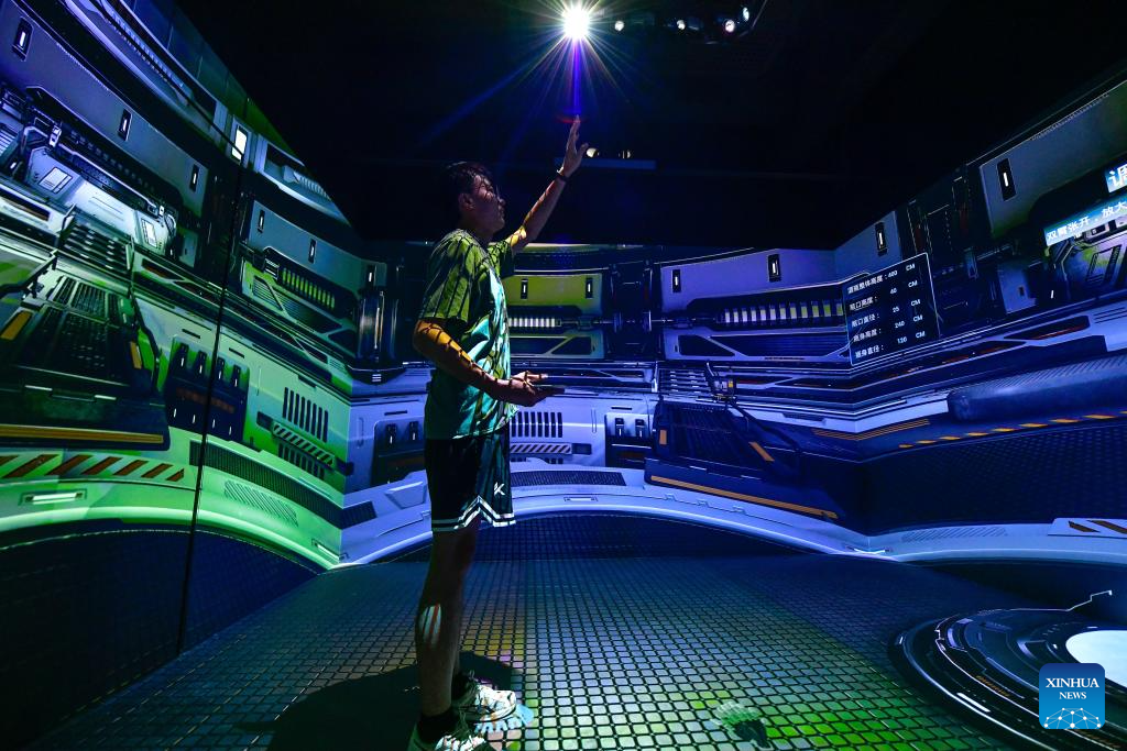 A student works at a metaverse space of the State Key Laboratory of Public Big Data at Guizhou University in Guiyang, southwest China's Guizhou Province, Aug. 29, 2024. As the first of its kind in the field of big data in the country, Guizhou University's State Key Laboratory of Public Big Data has three stable research directions, including multi-source data fusion and integration technology, public big data security and privacy protection, block data and regional governance. (Xinhua/Yang Wenbin)