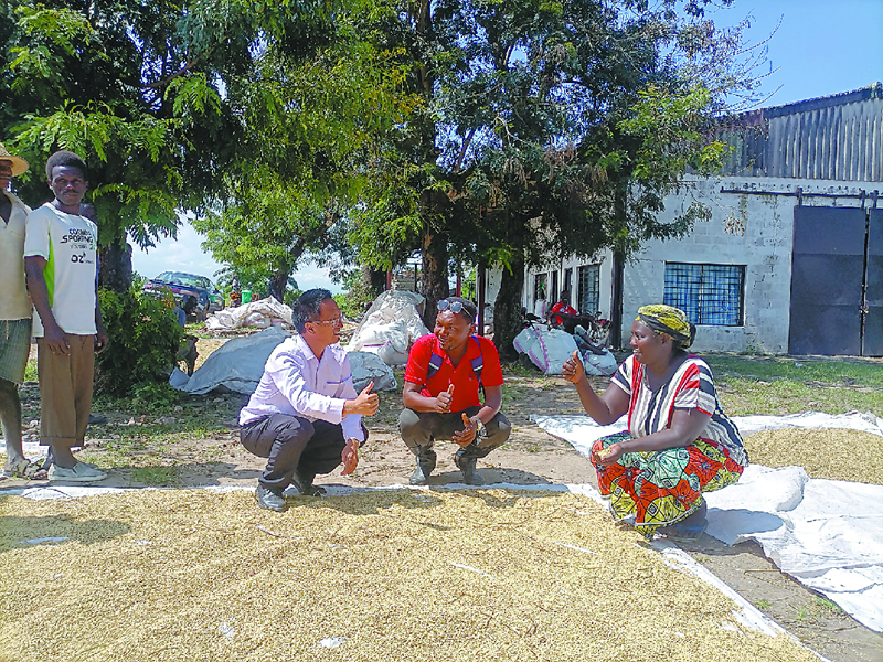 A Chinese expert aiding Burundi shares the joy of harvest of hybrid rice with local villagers. (Photo by Wu Peiyang)
