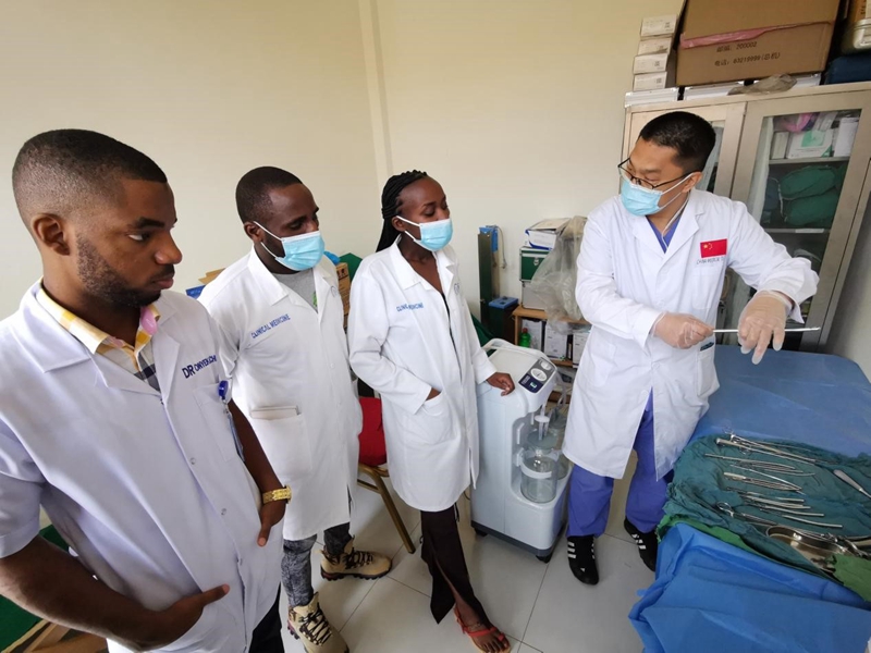 A member of a Chinese medical team gives a training session to obstetricians and gynaecologists in Rwanda. (Photo provided by the 23rd Chinese medical team in Rwanda)