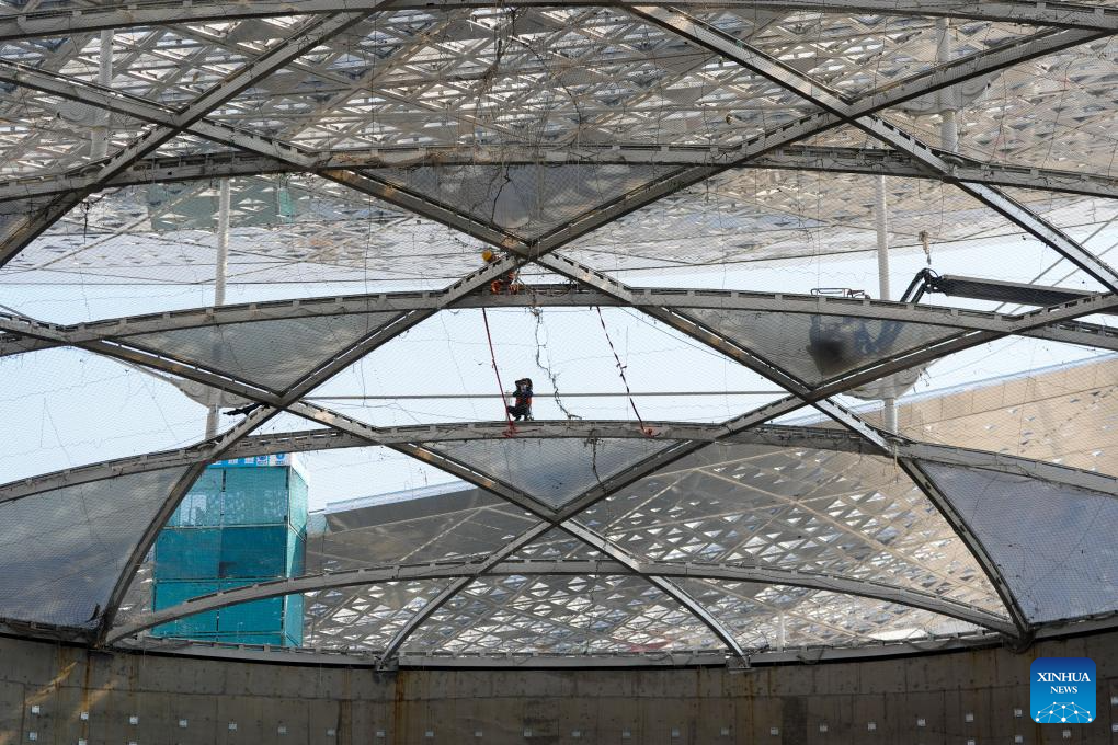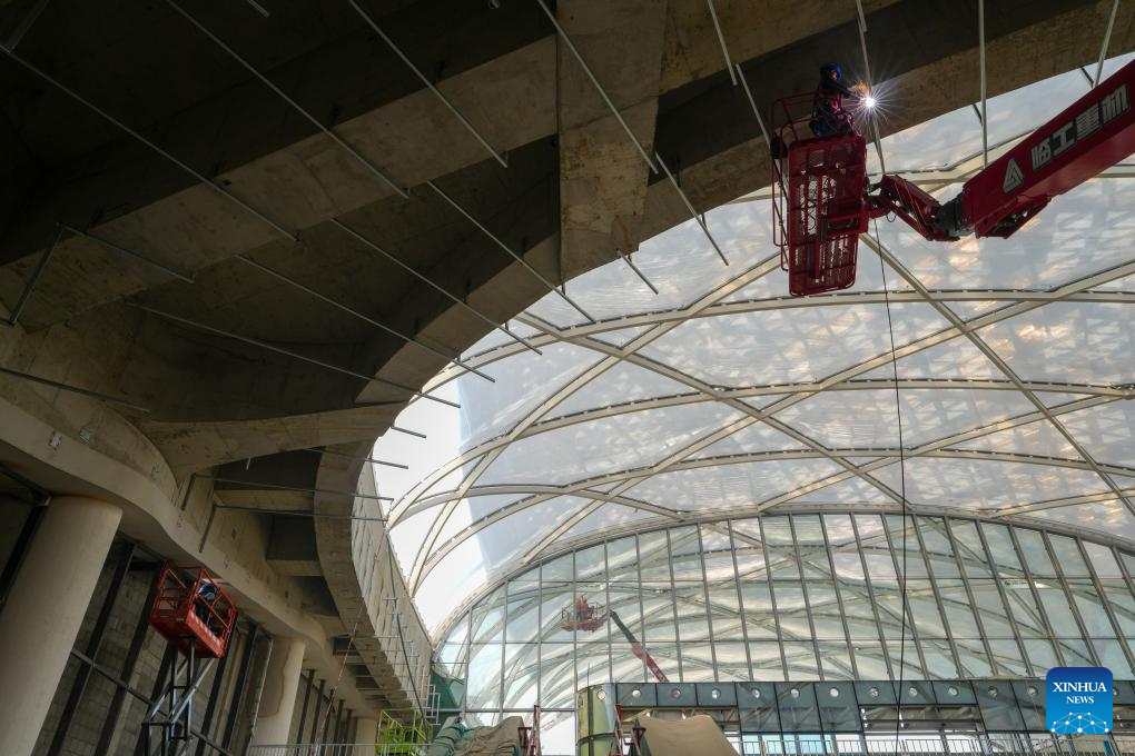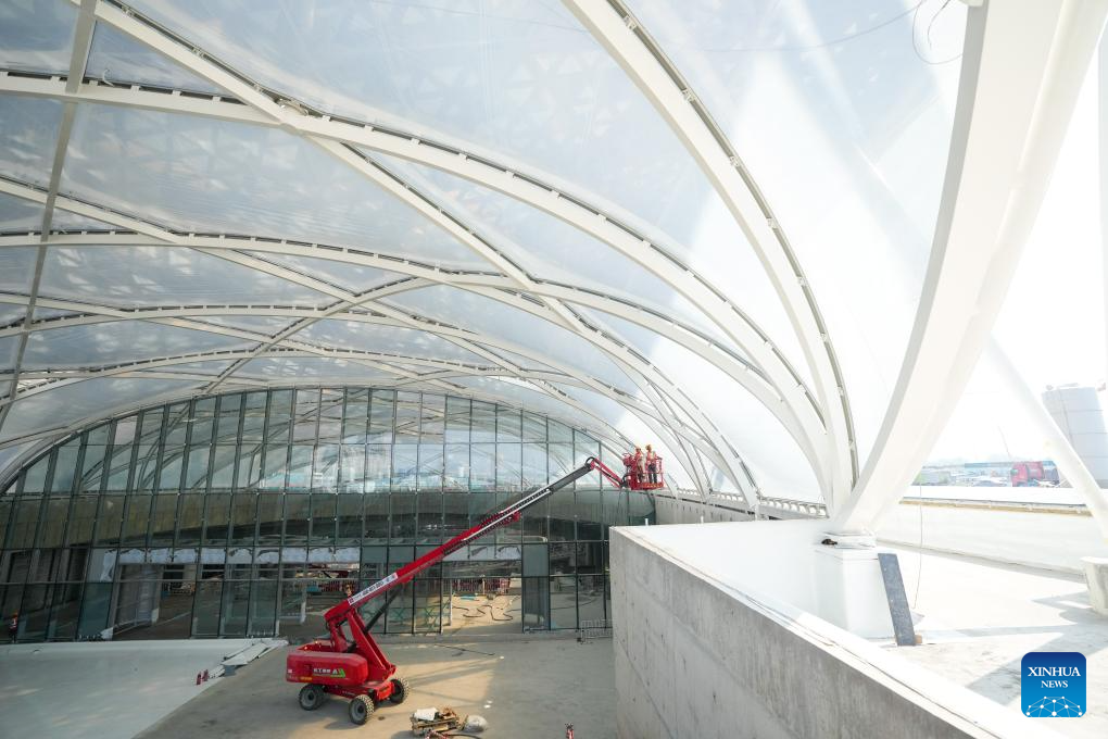 This photo taken on Aug. 30, 2024 shows the construction site of the integrated transportation hub at the Beijing Sub-center Station in Tongzhou District, sub-center of Beijing, capital of China. (Xinhua/Ju Huanzong)