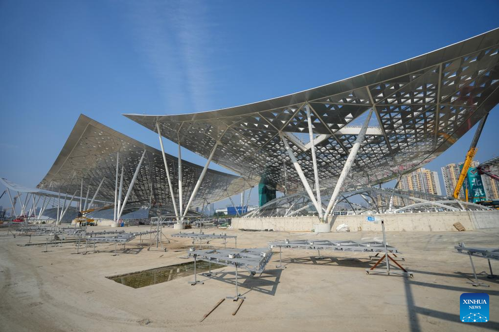 This photo taken on Aug. 30, 2024 shows the construction site of the integrated transportation hub at the Beijing Sub-center Station in Tongzhou District, sub-center of Beijing, capital of China. (Xinhua/Ju Huanzong)?