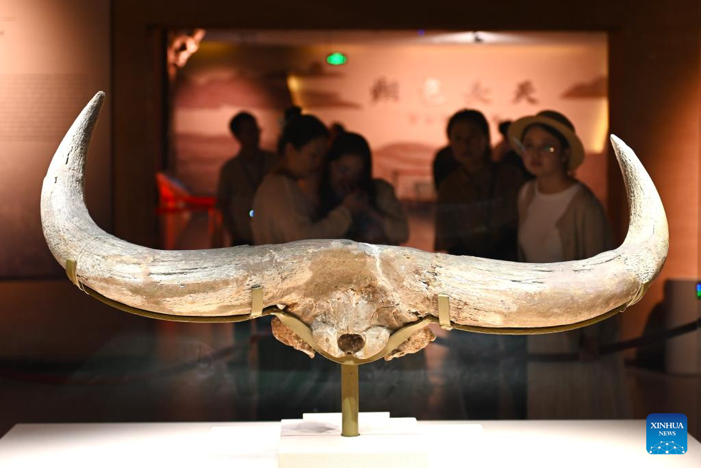 A fossil is seen in Ningxia Museum in Yinchuan, capital of northwest China's Ningxia Hui Autonomous Region, Sept. 1, 2024. As one of China's national first-grade museums, Ningxia Museum showcases the rich culture and history of Ningxia. (Xinhua/Mao Zhu)