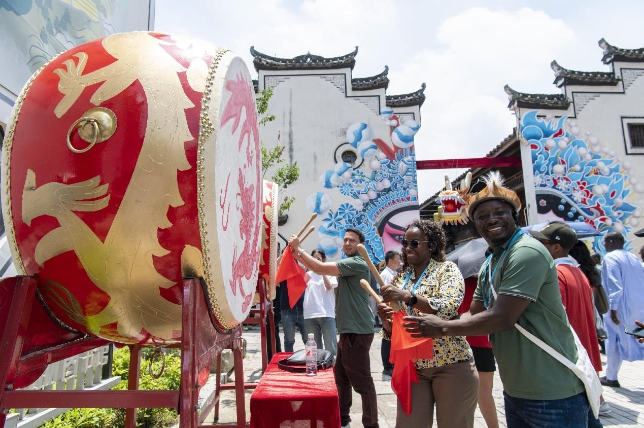 Young Africans experience local folk customs in Lingxia township, Jindong district, Jinhua, east China's Zhejiang province. (Photo/Hu Xiaofei)