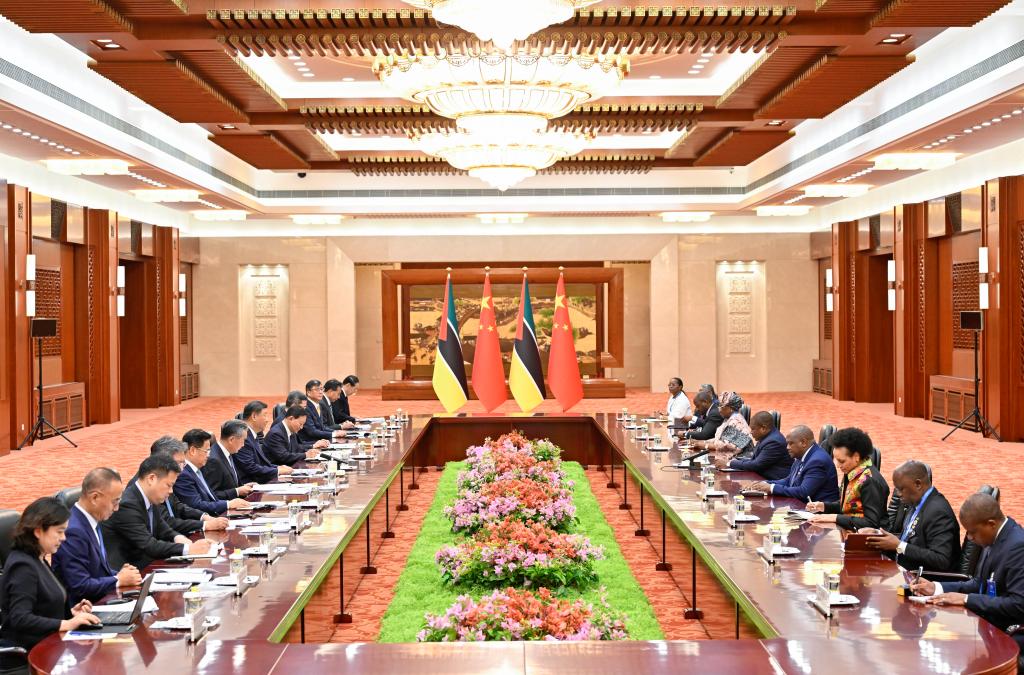 Xi said that next year will mark the 50th anniversary of the establishment of diplomatic relations between the two countries, and he hopes both sides will join efforts to carry forward friendship, deepen mutually beneficial cooperation, and add new substance to the China-Mozambique comprehensive strategic partnership of cooperation.