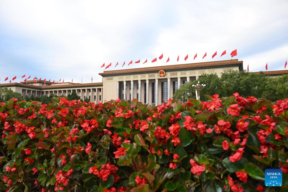 This photo taken on Sept. 5, 2024 shows an exterior view of the Great Hall of the People in Beijing, capital of China. The 2024 Summit of the Forum on China-Africa Cooperation (FOCAC) opened here on Thursday. (Xinhua/Li He)