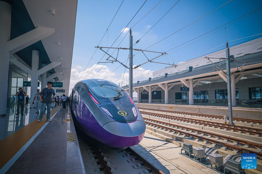 A bullet train pulls into Yiwu Railway Station of the Hangzhou-Wenzhou high-speed railway in Yiwu, east China's Zhejiang Province, Sept. 6, 2024.