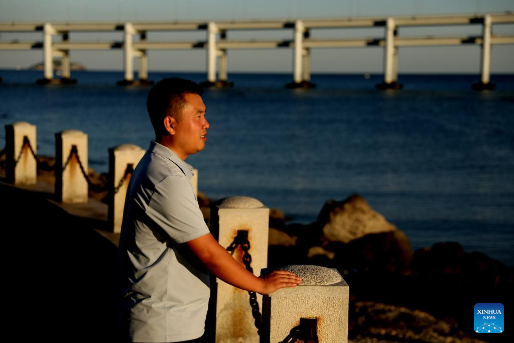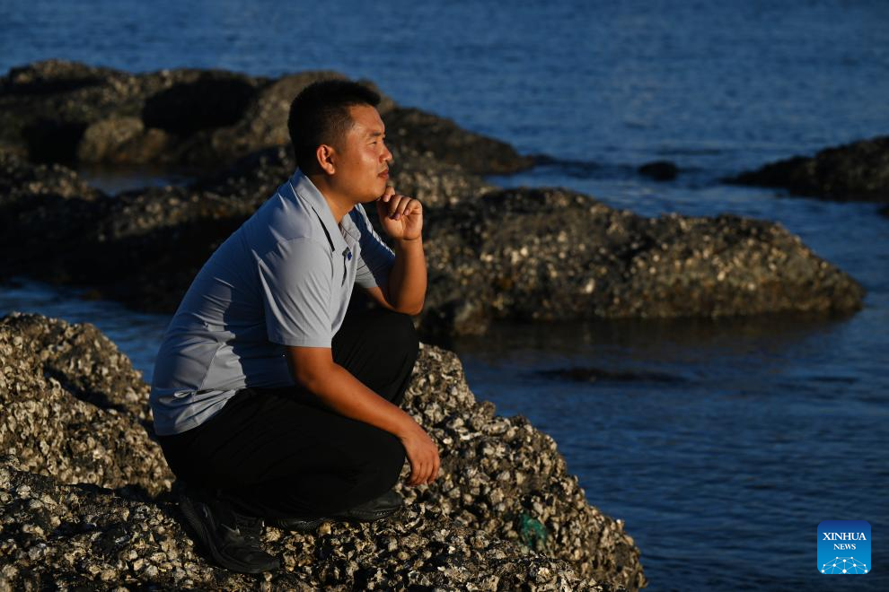 Wang Zhen enjoys the scenery at the seaside in Dalian, northeast China's Liaoning Province, Sept. 6, 2024. (Xinhua/Yang Qing)