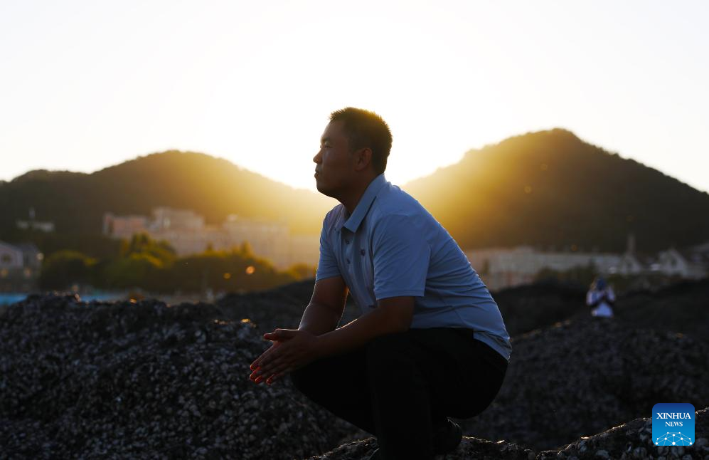 Wang Zhen enjoys the scenery at the seaside in Dalian, northeast China's Liaoning Province, Sept. 6, 2024. (Xinhua/Cai Xiangxin)