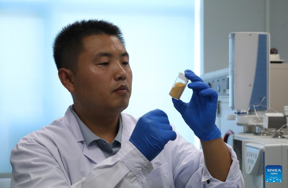 Wang Zhen checks an animal sample in the Liaoning Ocean and Fisheries Science Research Institute in Dalian, northeast China's Liaoning Province, Sept. 6, 2024. (Xinhua/Yang Qing)