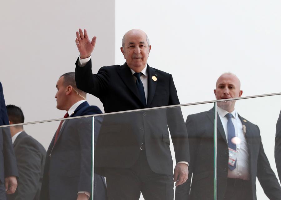 Algerian President Abdelmadjid Tebboune (C) waves during the 7th Summit of the Gas Exporting Countries Forum (GECF) in Algiers, Algeria, March 2, 2024. (Xinhua)