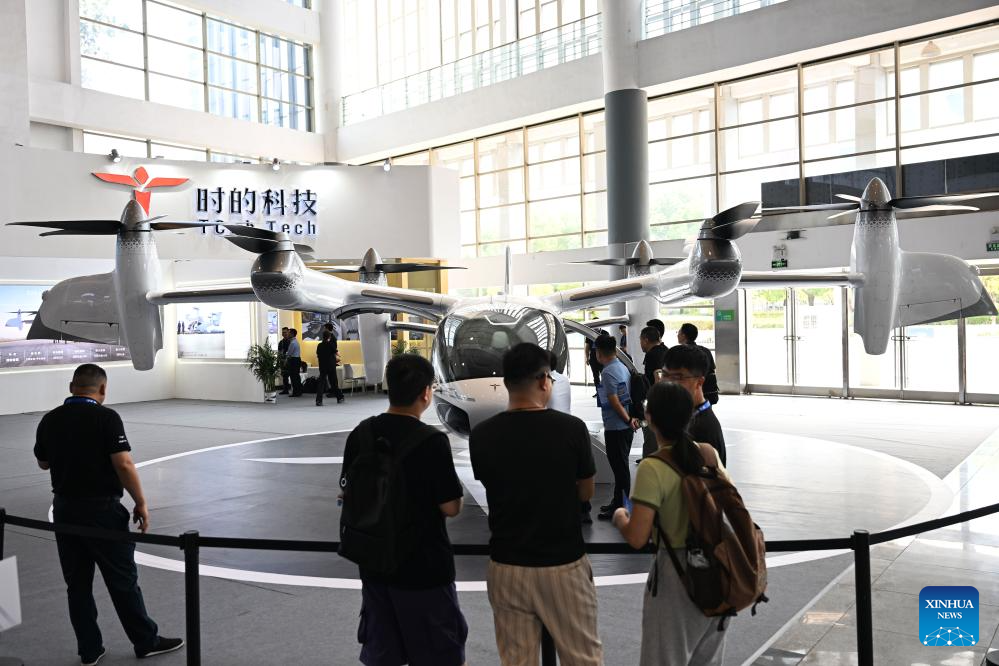 Visitors view an electric aircraft at an exhibition of the 2024 Low Altitude Economic Development Conference in Wuhu, east China's Anhui Province, Sept. 6, 2024. (Xinhua/Fu Tian)