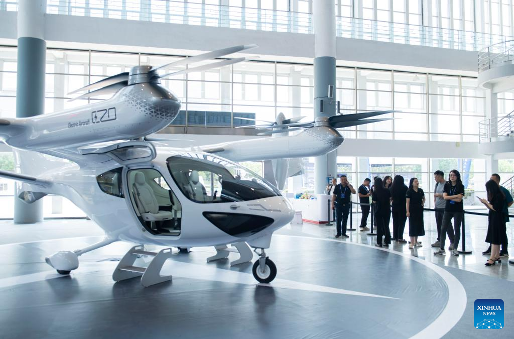 Visitors view an electric aircraft at an exhibition of the 2024 Low Altitude Economic Development Conference in Wuhu, east China's Anhui Province, Sept. 6, 2024. (Xinhua/Huang Bohan)