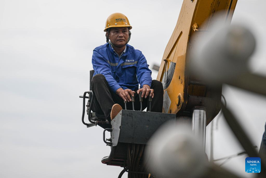 Staff members from a power company based in south China's Guangdong Province repair electrical facilities in Chengmai County, south China's Hainan Province, Sept. 9, 2024. Emergency response workers are busy fixing power supply facilities in Chengmai after Super Typhoon Yagi, the strongest autumn typhoon to land in China since 1949, hit Hainan on Friday. (Xinhua/Pu Xiaoxu)