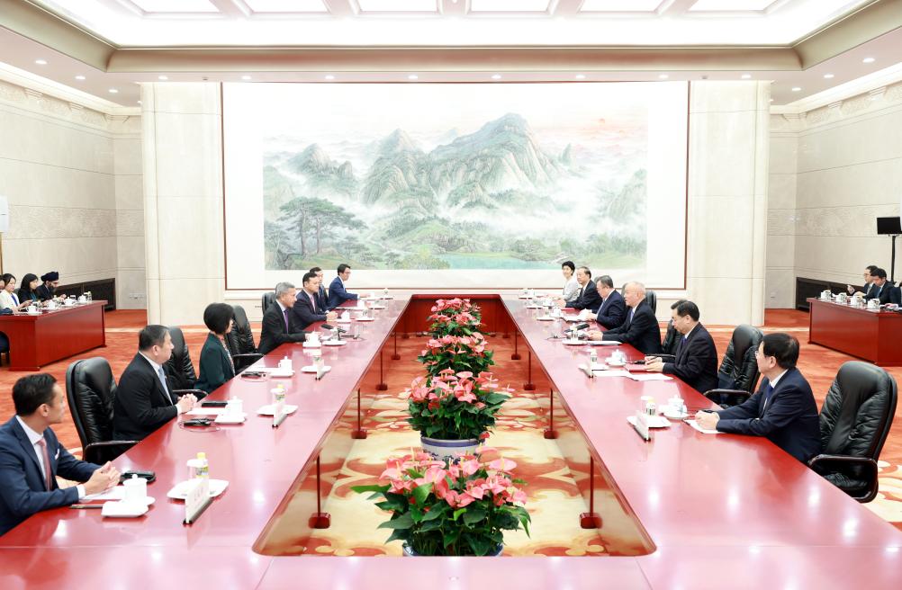 Cai Qi, a member of the Standing Committee of the Political Bureau of the Communist Party of China (CPC) Central Committee and a member of the Secretariat of the CPC Central Committee, meets with a delegation led by Vivian Balakrishnan, chairman of the External Relations Committee of the People's Action Party and minister for foreign affairs of Singapore in Beijing, capital of China, Sept. 9, 2024. (Xinhua/Wang Ye)