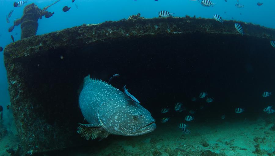 A grouper is pictured in the Wuzhizhou Island's marine ranch in Sanya, south China's Hainan Province, May 17, 2024. (Xinhua/Yang Guanyu)