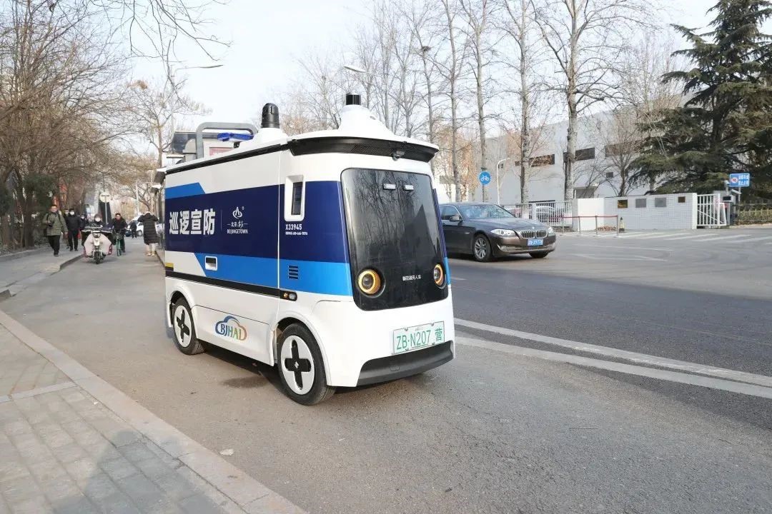 Photo shows an unmanned patrol vehicle equipped with atmospheric environment quality monitoring sensors in Beijing, capital of China. (Photo from the WeChat official account of the Administrative Committee of Beijing Economic-Technological Development Area)