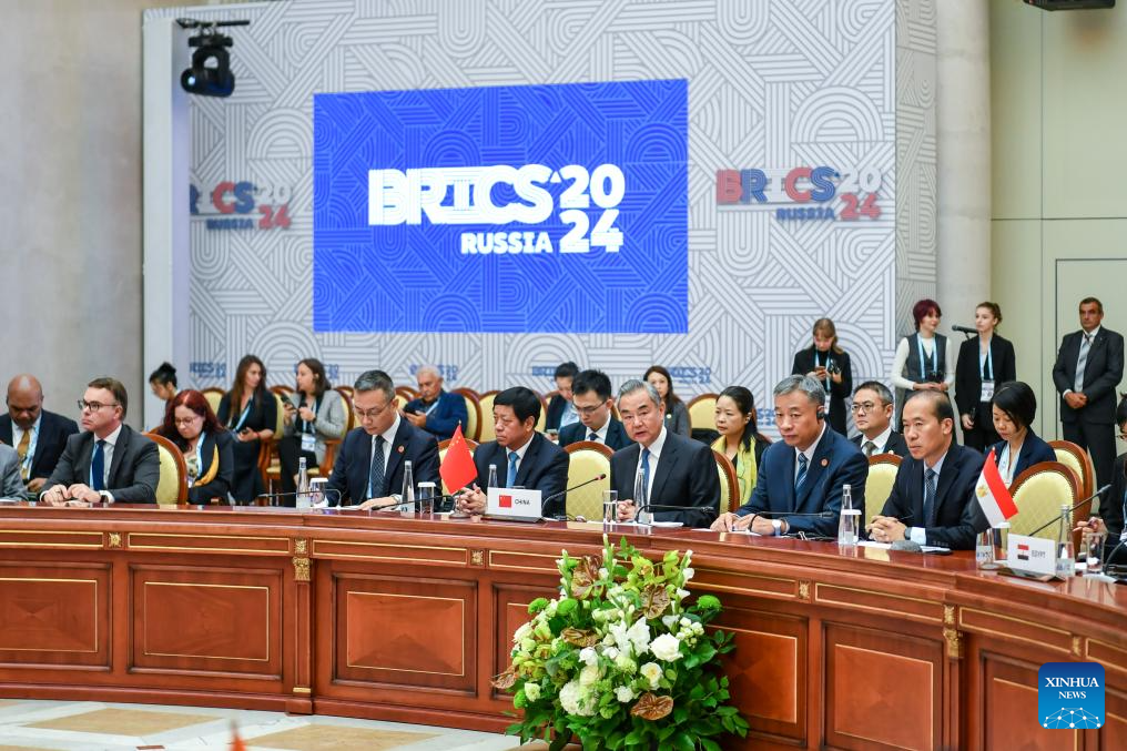 Wang Yi, a member of the Political Bureau of the Communist Party of China Central Committee and director of the Office of the Central Commission for Foreign Affairs, attends the 14th meeting of the BRICS high-ranking officials responsible for security matters and national security advisors in St. Petersburg, Russia, Sept. 11, 2024. (Xinhua/Cao Yang)