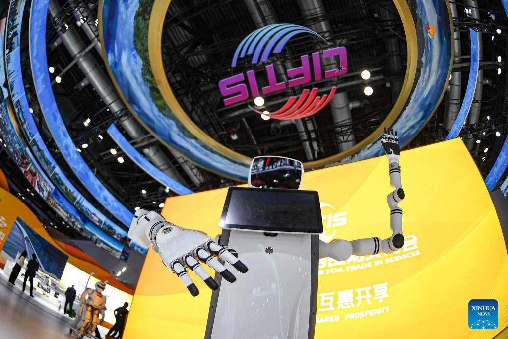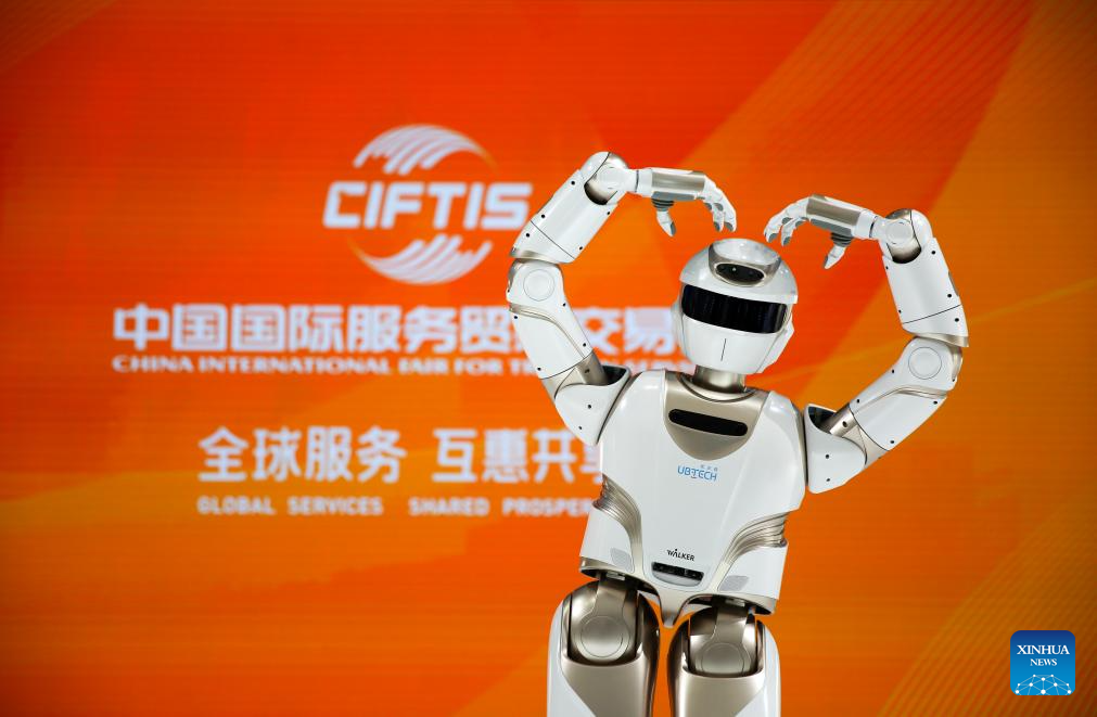 A robot is pictured during the 2024 China International Fair for Trade in Services (CIFTIS) at the China National Convention Center in Beijing, capital of China, Sept. 12, 2024. Themed "Global Services, Shared Prosperity," the 2024 CIFTIS opened at the China National Convention Center and the Shougang Park in Beijing on Thursday. (Xinhua/Chen Zhonghao)
