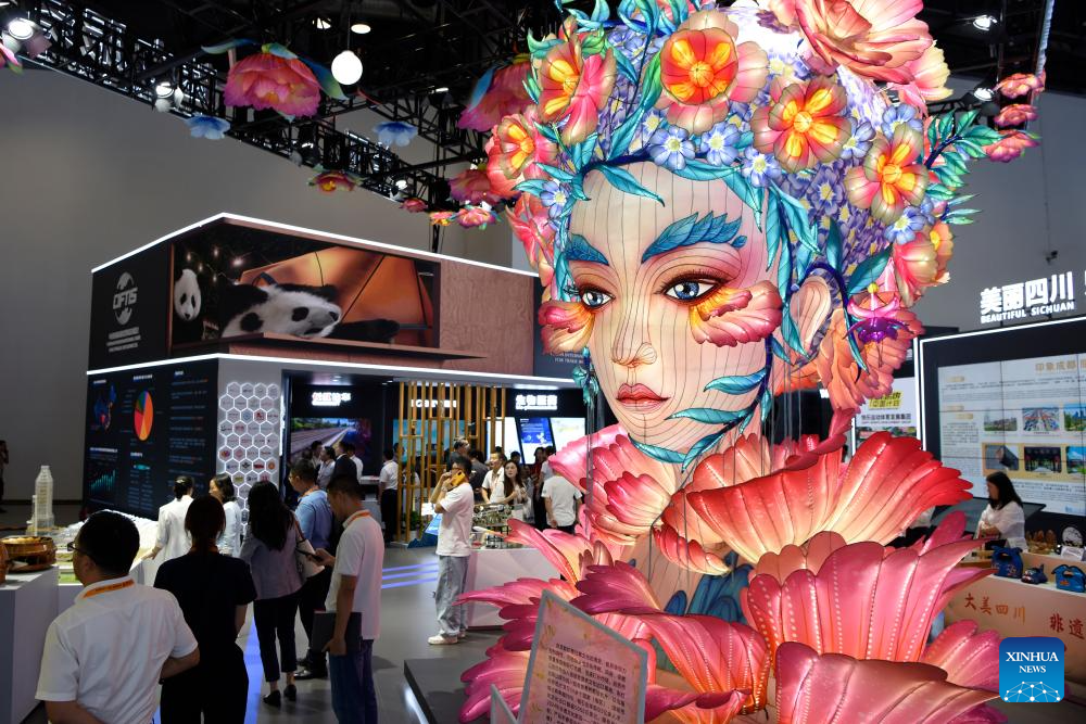 People visit the booth of south China's Sichuan Province during the 2024 China International Fair for Trade in Services (CIFTIS) at the China National Convention Center in Beijing, capital of China, Sept. 12, 2024. Themed "Global Services, Shared Prosperity," the 2024 CIFTIS opened at the China National Convention Center and the Shougang Park in Beijing on Thursday. (Xinhua/Wu Wei)