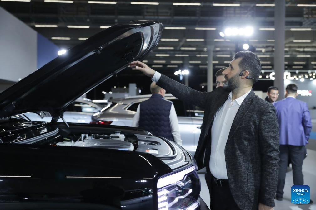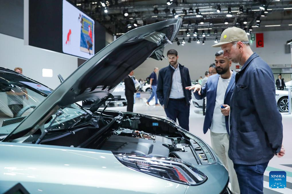 An Electric Vehicle Expo (EVA Expo), hosted by the Automotive Sub-council of China Council for the Promotion of International Trade (CCPIT Auto), is offering trade visitors an opportunity to connect with Chinese auto manufacturers and explore potential partnership opportunities during the Automechanika fair. (Xinhua/Zhang Fan)