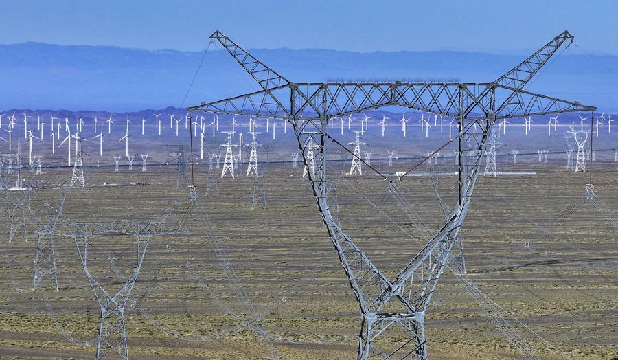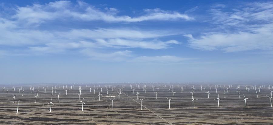 HAMI, Sept. 12 (Xinhua) -- Rich in wind energy resources, Hami City of northwest China's Xinjiang Uygur Autonomous Region is one of the country's major wind power bases. To make the most out of its resource advantages, the city has accelerated the development and construction of wind power projects in recent years to promote green energy transformation. At the same time, many domestic wind power enterprises have also been introduced here to build wind power equipment manufacturing industry chains to promote high-quality economic development.