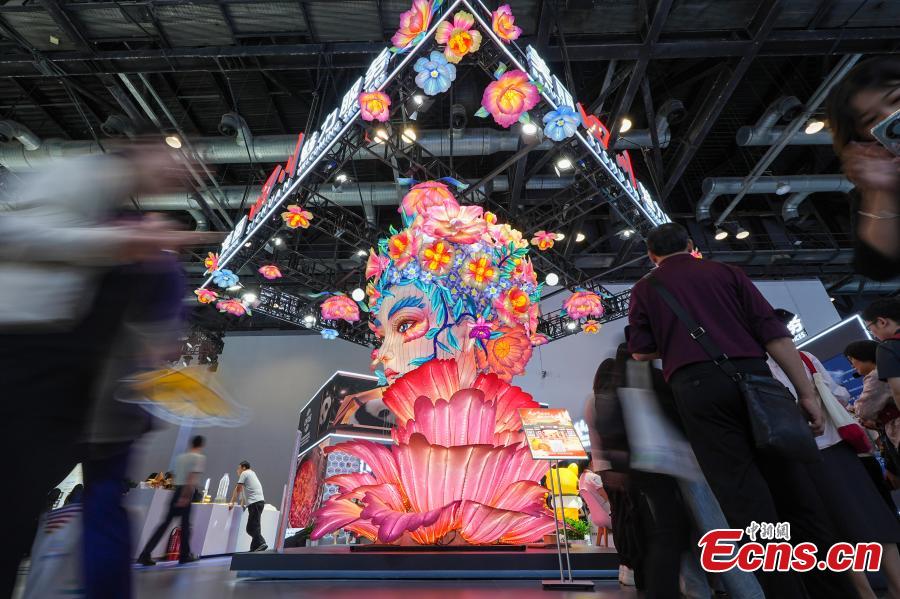 A Zigong lantern is displayed at the booth of southwest China's Sichuan Province during the 2024 China International Fair for Trade in Services (CIFTIS) at the China National Convention Center in Beijing, Sept. 12, 2024. (Photo: China News Service/Zhang Xiangyi)