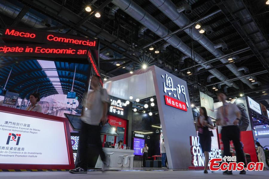People visit the booth of the Macao Special Administrative Region during the 2024 China International Fair for Trade in Services (CIFTIS) at the China National Convention Center in Beijing, Sept. 12, 2024. (Photo: China News Service/Zhang Xiangyi)