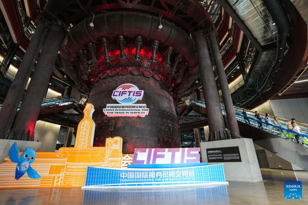 This photo taken on Sept. 13, 2024 shows a view of the Shougang Park, a venue of the 2024 China International Fair for Trade in Services (CIFTIS), in Beijing, capital of China. Themed "Global Services, Shared Prosperity," the 2024 CIFTIS is held at the China National Convention Center and the Shougang Park in Beijing from Sept. 12 to 16. (Xinhua/Chen Yehua)