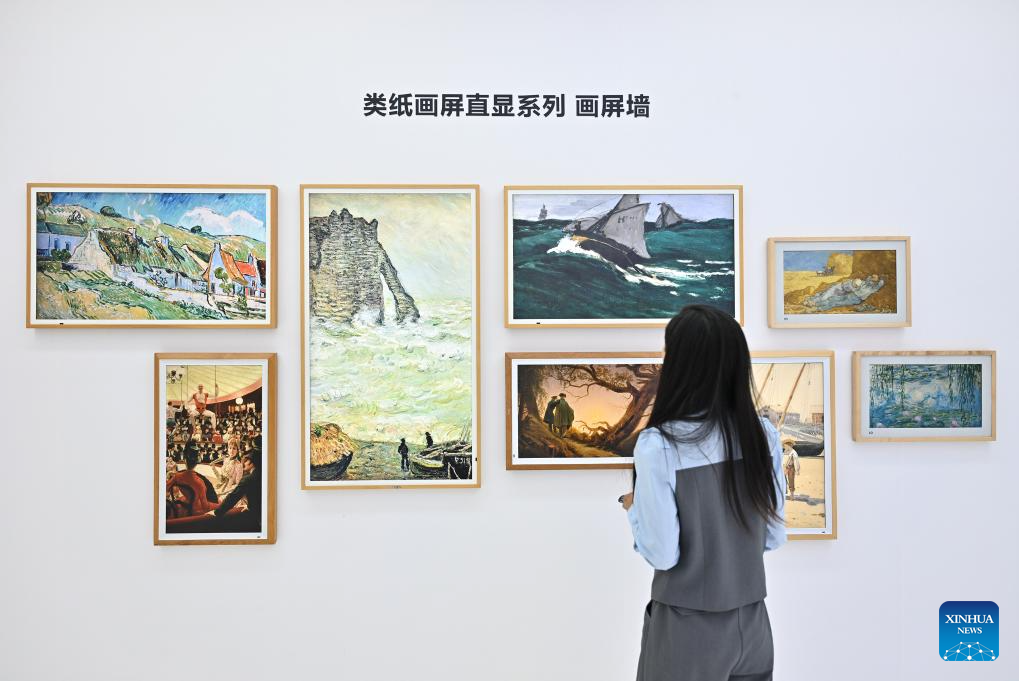 A woman looks at paper-resembling electronic displays during the 2024 China International Fair for Trade in Services (CIFTIS) in Beijing, capital of China, Sept. 13, 2024. Themed "Global Services, Shared Prosperity," the 2024 CIFTIS is held at the China National Convention Center and the Shougang Park in Beijing from Sept. 12 to 16. (Xinhua/Li Xin)