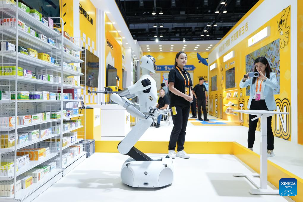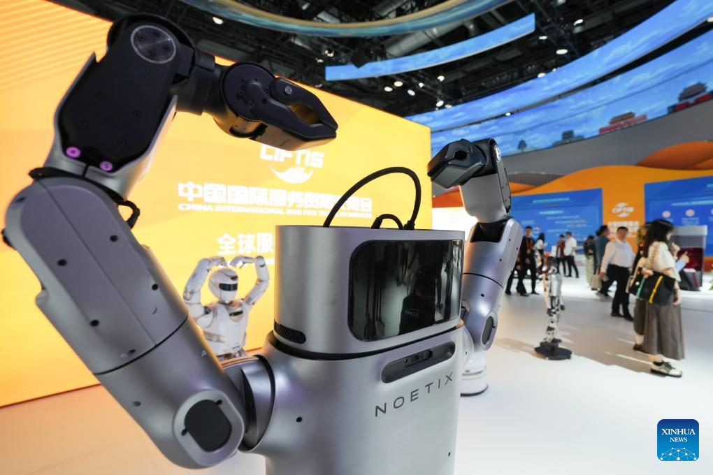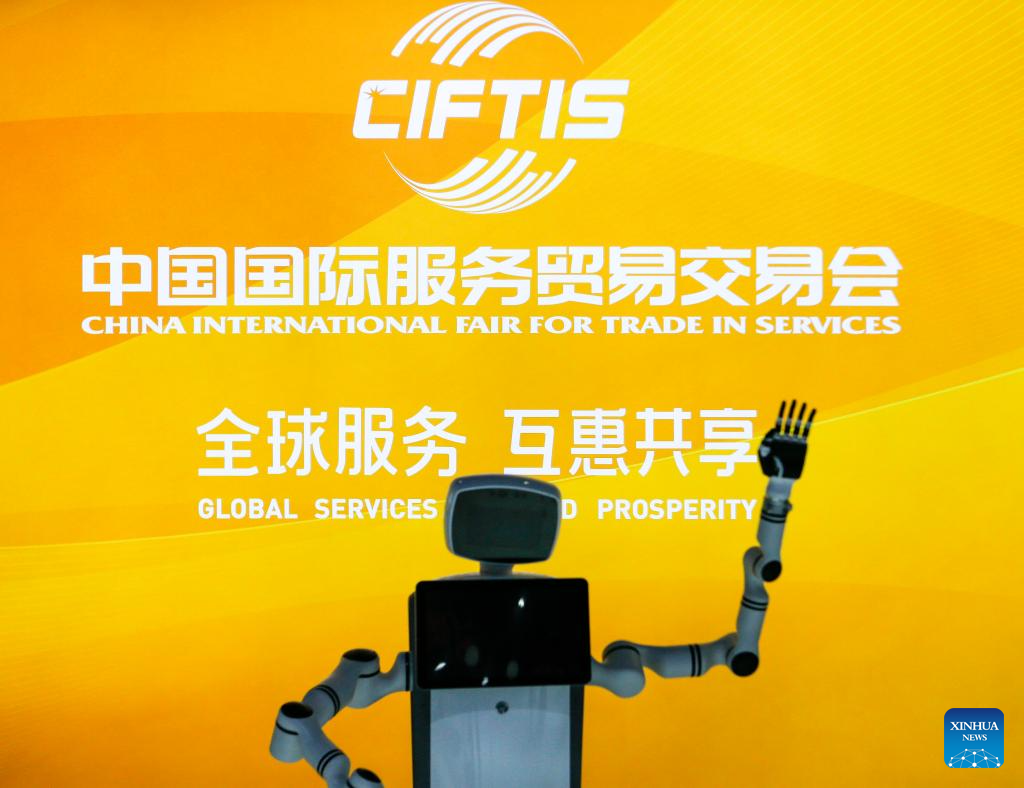 A robot is pictured during the 2024 China International Fair for Trade in Services (CIFTIS) at the China National Convention Center in Beijing, capital of China, Sept. 13, 2024. Themed "Global Services, Shared Prosperity," the 2024 CIFTIS is held at the China National Convention Center and the Shougang Park in Beijing from Sept. 12 to 16. (Xinhua/Ding Hongfa)