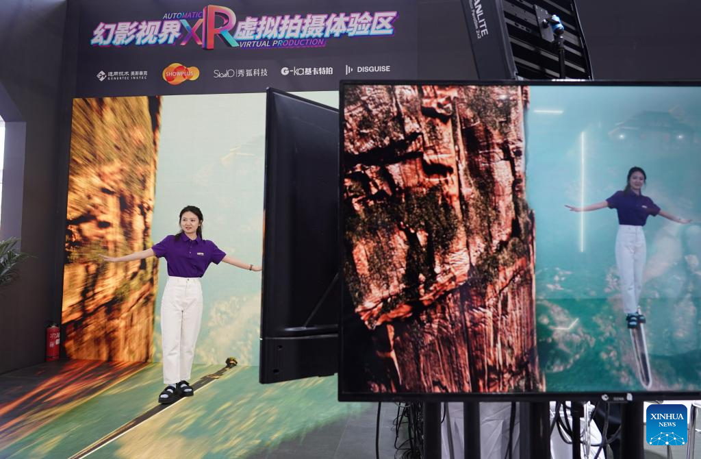A visitor tries XR (extended reality) technologies during the 2024 China International Fair for Trade in Services (CIFTIS) at the Shougang Park in Beijing, capital of China, Sept. 13, 2024. Themed "Global Services, Shared Prosperity," the 2024 CIFTIS is held at the China National Convention Center and the Shougang Park in Beijing from Sept. 12 to 16. (Xinhua/Chen Zhonghao)