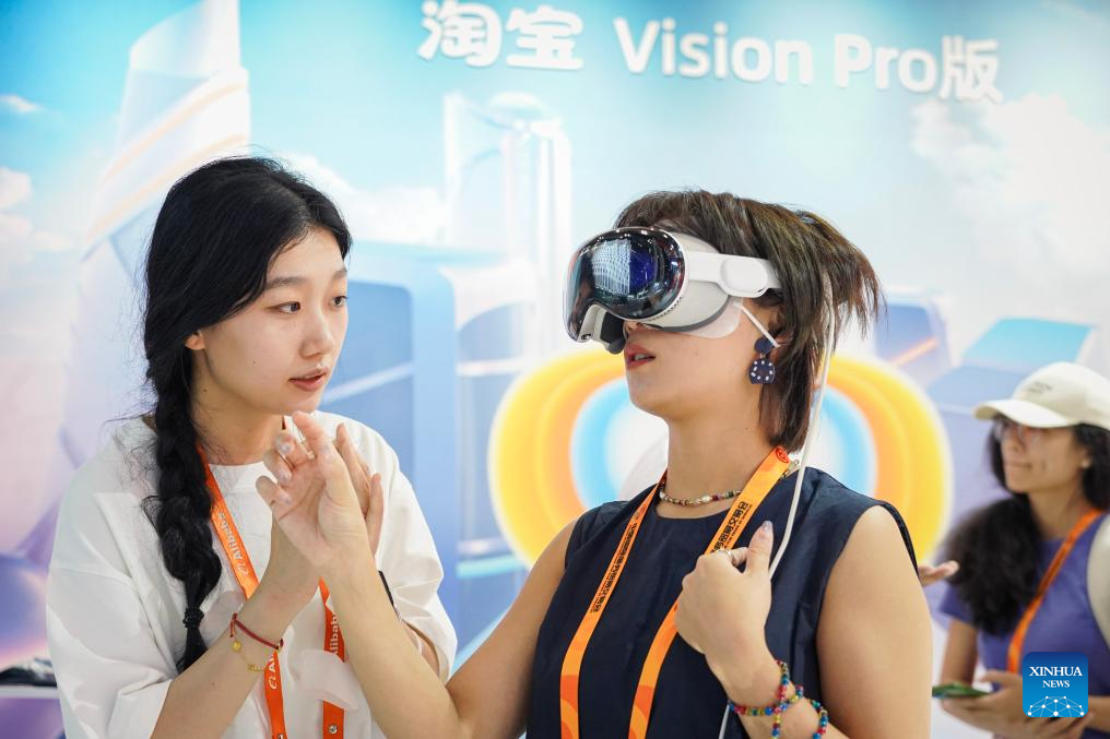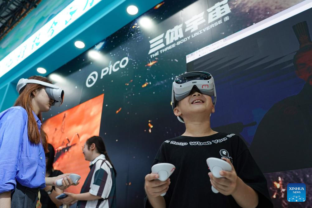 Visitors experience MR (mixed reality) devices during the 2024 China International Fair for Trade in Services (CIFTIS) at the Shougang Park in Beijing, capital of China, Sept. 13, 2024. Themed "Global Services, Shared Prosperity," the 2024 CIFTIS is held at the China National Convention Center and the Shougang Park in Beijing from Sept. 12 to 16. (Xinhua/Chen Zhonghao)