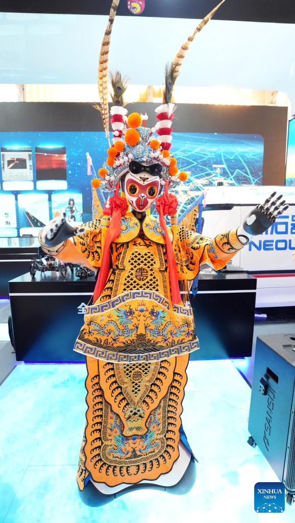 An opera-performing humanoid robot is pictured during the 2024 China International Fair for Trade in Services (CIFTIS) at the Shougang Park in Beijing, capital of China, Sept. 13, 2024. Themed "Global Services, Shared Prosperity," the 2024 CIFTIS is held at the China National Convention Center and the Shougang Park in Beijing from Sept. 12 to 16. (Xinhua/Chen Yehua)