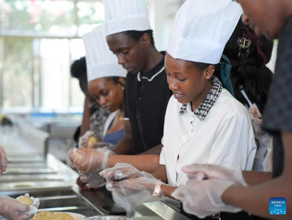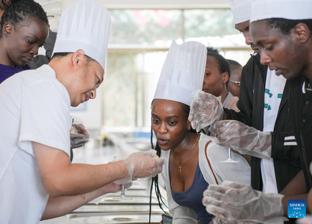 Kenyan students learn to make moon cakes during a Mid-Autumn Festival celebration in Nairobi, Kenya, on Sept. 13, 2024. Africa Star Railway Operation Company (Afristar), the operator of Kenya's Standard Gauge Railway (SGR), and the Confucius Institute at the University of Nairobi, Kenya's oldest university, on Friday partnered to host the upcoming Mid-Autumn Festival, one of China's most important traditional holidays. (Xinhua/Li Yahui)