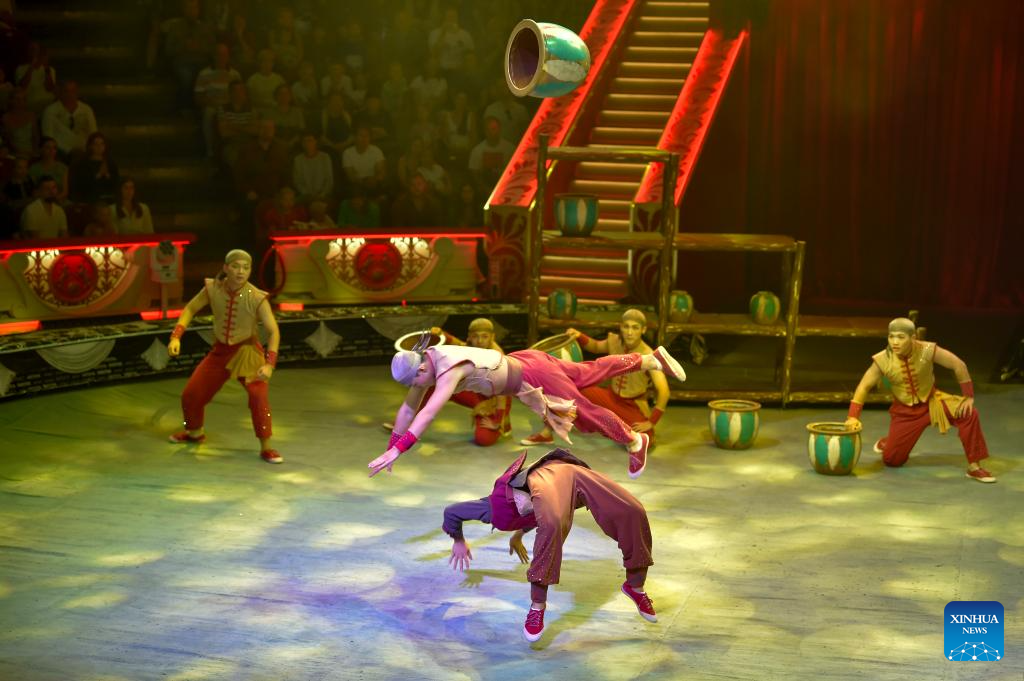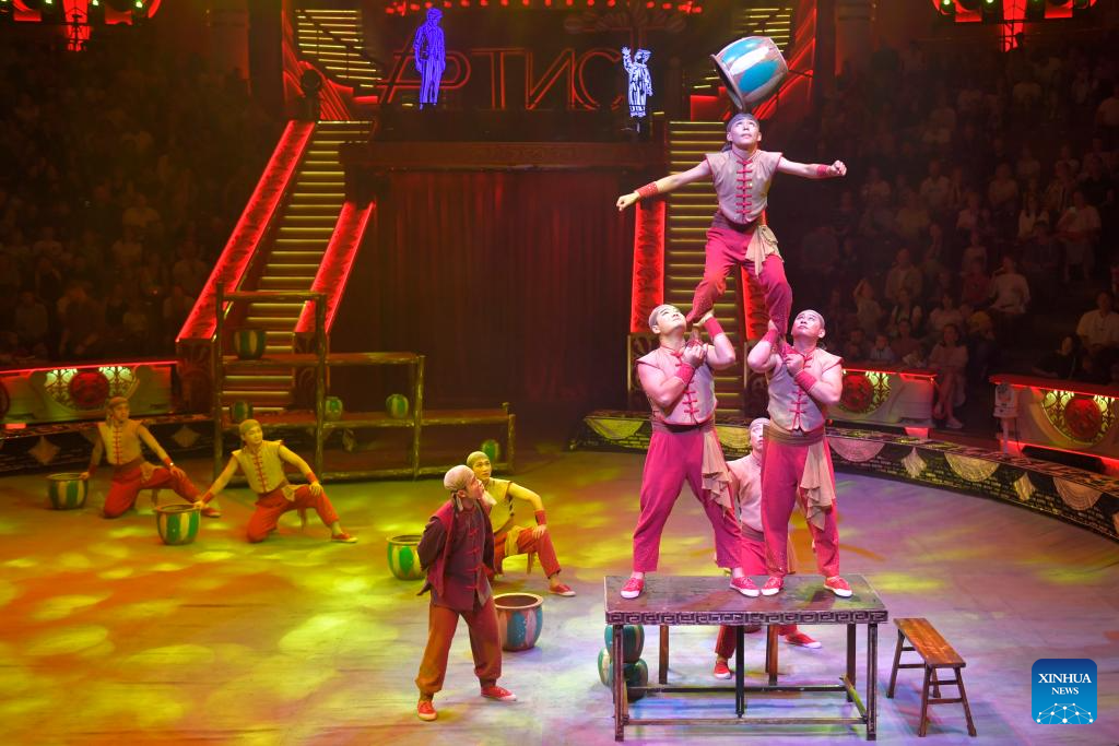 Participants from China perform during an international circus festival in Moscow, Russia, on Sep. 15, 2024. (Photo by Alexander Zemlianichenko Jr/Xinhua)